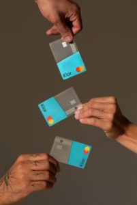 People pose for a photograph with credit cards from Mexican financial services start-up Klar in Mexico City, Mexico August 4, 2023. Klar/Handout via Reuters