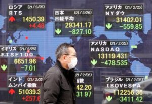 FILE PHOTO: A man walks past a stock quotation board at a brokerage in Tokyo, Japan February 26, 2021. REUTERS/Kim Kyung-Hoon/File Photo