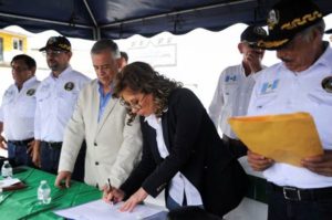 Presidential candidate Sandra Torres, of the National Unity of Hope (UNE) political party, signs a mutual support agreement with Guatemalan veterans during a meeting ahead of the presidential run-off, in Guatemala City, Guatemala August 15, 2023. REUTERS/Cristina Chiquin