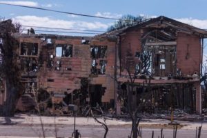 A general view of a damaged structure in the fire ravaged town of Lahaina on the island of Maui in Hawaii, U.S., August 15, 2023. REUTERS/Mike Blake