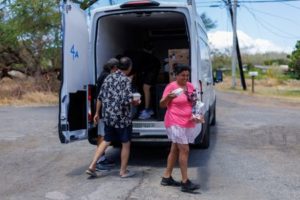FILE PHOTO: Yadira Ulloa, 55, receives a warm lunch from World Central Kitchen outside her daughter’s home in Lahaina after her home was destroyed during the Lahaina fire on the island of Maui in Hawaii, U.S., August 15, 2023. REUTERS/Mike Blake/File photo