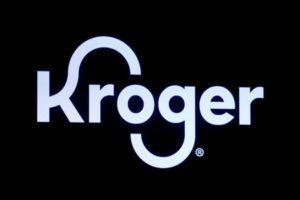FILE PHOTO: A screen displays the company logo for Kroger Co on the floor of the New York Stock Exchange (NYSE) in New York City, U.S., October 14, 2022. REUTERS/Brendan McDermid/File Photo