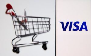 FILE PHOTO: Smartphone with Visa logo is placed near toy shopping cart in this illustration taken, July 15, 2021. REUTERS/Dado Ruvic/Illustration