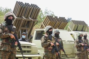 FILE PHOTO: Hezbollah members take part in a military exercise during a media tour organized for the occasion of Resistance and Liberation Day, in Aaramta, Lebanon May 21, 2023. REUTERS/Aziz Taher/File Photo