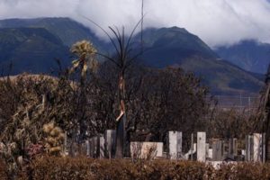 FILE PHOTO: A large L is carved atop a mountain looking out over the fire ravaged town of Lahaina on the island of Maui in Hawaii, U.S., August 15, 2023. REUTERS/Mike Blake/File Photo
