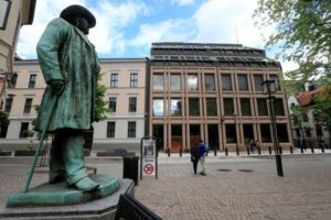 FILE PHOTO: People go about their day near Norway’s central bank building in Oslo, Norway May 31, 2017. REUTERS/Ints Kalnins/File Photo