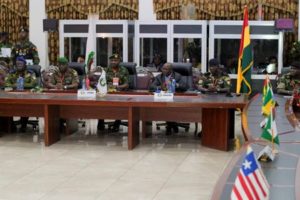 The ECOWAS Committee of Chiefs of Defense staff brief the press on plans to deploy its standby force to the Republic of Niger, in Accra, Ghana, August 18, 2023. REUTERS/Francis Kokoroko