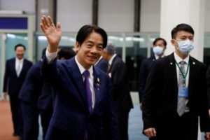 FILE PHOTO: Taiwan’s Vice President William Lai waves at Taoyuan International Airport following his trip to the United States and Paraguay, in Taoyuan, Taiwan August 18, 2023. REUTERS/Carlos Garcia Rawlins/File Photo