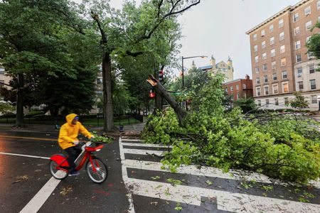 By David Shepardson WASHINGTON (Reuters) -U.S. government offices in the Washington D.C. area closed early on Monday because of threatening weather as forecasters warned people across the eastern U.S. of possible tornadoes, damaging winds and large hailstones. Fast-moving thunderstorms and powerful winds toppled trees and knocked out power for nearly 200,000 homes and businesses in…