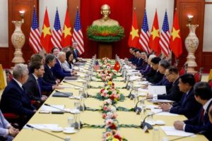 U.S. President Joe Biden attends a meeting with Vietnam’s Communist Party General Secretary Nguyen Phu Trong, at the Communist Party of Vietnam Headquarters in Hanoi, Vietnam, September 10, 2023. REUTERS/Evelyn Hockstein