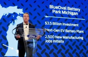 FILE PHOTO: Ford Motor Company Chief Executive Bill Ford announces Ford will partner with Chinese-based, Amperex Technology, to build an all-electric vehicle battery plant in Marshall, Michigan, during a press conference in Romulus, Michigan U.S., February 13, 2023. REUTERS/Rebecca Cook/File Photo