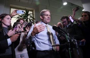 Rep. Jim Jordan (R-OH) faces reporters after it was reported that Jordan vowed to continue his floundering bid for speaker of the U.S. House of Representatives after earlier saying he would back a plan to empower Speaker of the House Pro Tempore Patrick McHenry (R-NC) to hold the post until January, at the U.S. Capitol in Washington, U.S., October 19, 2023. REUTERS/Leah Millis
