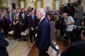 U.S. President Joe Biden and Vice President Kamala Harris hold an event to sign an Executive Order on Artificial Intelligence in the East Room at the White House in Washington, U.S., October 30, 2023. REUTERS/Leah Millis