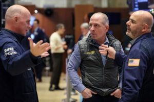 Traders work on the floor of the NYSE in New