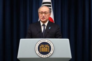 Japan’s National Security Secretariat Secretary-General Takeo Akiba attends a joint press conference at the presidential office, in Seoul, South Korea on December 09, 2023. Chung Sung-Jun/Pool via REUTERS