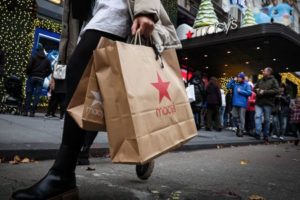 A customer exits the Macy’s flagship department store in midtown