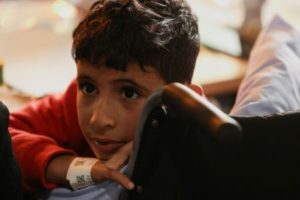 A Palestinian child looks on at the hospital onboard the French ship amphibious helicopter carrier Dixmude as it docks, amid the ongoing conflict between Israel and the Palestinian Islamist group Hamas, in the city of Al-Arish, Sinai peninsula, Egypt, January 21, 2024. REUTERS/Mohamed Abd El Ghany