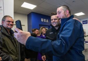 U.S. Representative Matt Gaetz (R-FL) takes a selfie with a supporter at the New Hampshire campaign headquarters of Republican presidential candidate and former U.S. President Donald Trump ahead of the New Hampshire presidential primary election in Manchester, New Hampshire, U.S. January 21, 2024. REUTERS/Faith Ninivaggi