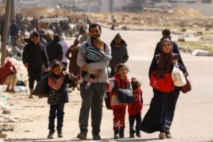 Palestinians, fleeing Khan Younis, move towards Rafah, during the Israeli ground operation against Palestinian Islamist group Hamas, in the southern Gaza Strip, January 30, 2024. REUTERS/Ibraheem Abu Mustafa