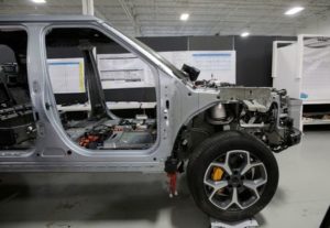 A partially dismantled Rivian R1T electric truck is seen during its teardown at the Munro & Associates headquarters in Auburn Hills, Michigan, U.S., June 3, 2022. REUTERS/Rebecca Cook/File Photo