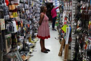 FILE PHOTO: People shop at a 99 Cents retail store in the Bronx borough of New York City, U.S., July 13, 2022. REUTERS/Shannon Stapleton/File Photo
