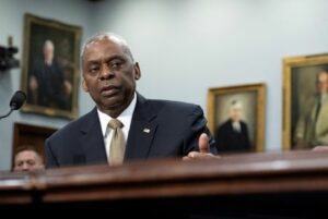 FILE PHOTO: U.S. Defense Secretary Lloyd Austin and the Chairman of the Joint Chiefs of Staff General Charles Brown, Jr. testify before a House Appropriations Defense Subcommittee hearing on President Biden’s proposed budget request for the Department of Defense on Capitol Hill in Washington, U.S., April 17, 2024. REUTERS/Ken Cedeno./File Photo