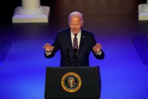 U.S. President Joe Biden delivers a speech to mark the third anniversary of the January 6, 2021 attack on the U.S. Capitol at a campaign event at Montgomery County Community College, in Blue Bell, near Valley Forge, Pennsylvania, U.S., January 5, 2024. REUTERS/Eduardo Munoz